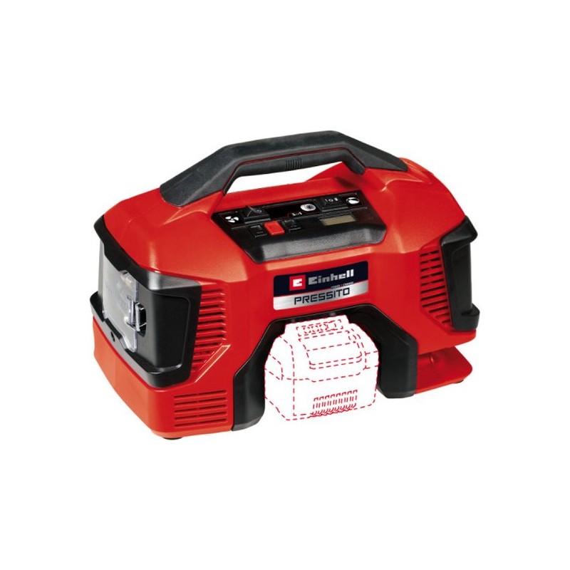 Met de Einhell accu compressor Pressito 18/21 komt u nooit zonder lucht te zitten. Pompen of ontluchten: de compressor kan veelzijdig worden ingezet. De compressor is onderdeel van de Power X-Change productlijn: De PXC accu is te gebruiken in alle machines uit deze productlijn. Dankzij de hogedrukpomp is de compressor geschikt voor het oppompen van autobanden, fietsbanden en ballen, de lagedrukpomp is dan weer geschikt voor het vullen of ontluchten van luchtbedden. De compressor is uitgerust met een digitaal scherm met drukweergave, met eenvoudige handmatige bediening. De selecteerbare drukeenheden zijn bar, psi en kPa. Bij de hogedrukpomp kan de gewenste druk worden ingesteld.