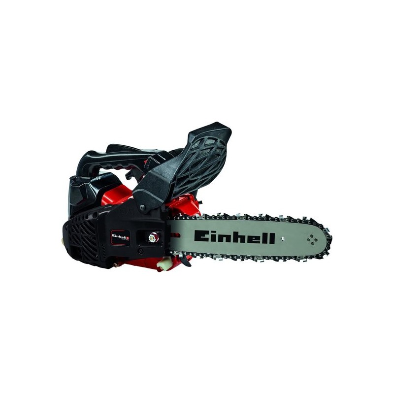 De Einhell GC-PC 730 I met 2e ketting is een krachtige en compacte Benzine Kettingzaag, die dient als een handige en efficiënt hulpmiddel bij het uitvoeren van verschillende zaagwerkzaamheden. Gebruik de kettingzaag bijvoorbeeld bij het uitdunnen van struikgewassen, het snoeien van bomen of het verkleinen van boomstammen. Dankzij de werking op benzine biedt deze kettingzaag je een grote mate van vrijheid. Dankzij de krachtige 900 W, 2-takt luchtgekoelde motor kunnen optimale resultaten worden behaald. Dankzij een cilinderinhoud van 25,4 ccm en een benzinetank van 0,23 L wordt een lange werkduur van de kettingzaag gegarandeerd. De motor levert een maximale zaagsnelheid van 21 meter per seconde. De kettingzaag beschikt over een elektronische ontsteking, automatische choke en primer. Zo kan je snel van start met de kettingzaag. Deze kettingzaag heeft een zwaardlengte van 305 mm en een zaaglengte van 240 mm. Om je veiligheid tijdens het gebruik van de machine te waarborgen beschikt deze kettingzaag over een terugslagbescherming met kettingstop. Zo kan de machine binnen enkele milli-seconden worden stopgezet in een noodsituatie. De kettingzaag wordt gekenmerkt door een trillingsarme werking, waardoor vermoeidheidsverschijnselen minder snel zullen optreden. Daarbij bevordert de trillingsarme werking van de machine een comfortabele en nauwkeurige geleiding. Voor een lange levensduur van de ketting, wordt deze automatisch gesmeerd. Hiervoor is de machine voorzien van een oliereservoir van 160 ml. Wanneer de benzinekettingzaag in de stand-bymodus wordt gezet, zorgt de centrifugaalkoppeling voor de ontkoppeling van de ketting van de motor. Mocht de ketting na verloop van tijd versleten zijn, dan kun je deze snel en eenvoudig verwisselen voor een nieuwe ketting die met de machine wordt meegeleverd. Zo kan je lange tijd vooruit met deze kettingzaag. Om de kettingzaag veilig te kunnen vervoeren wordt deze geleverd met een veiligheidskap, die je over het zwaard van de machine kan schuiven. Met de robuuste metalen klauwen aan de onderzijde is de machine zeer stabiel tijdens het gebruik. Daarbij dienen de klauwen als het draaipunt bij het zagen van horizontale boomstammen.