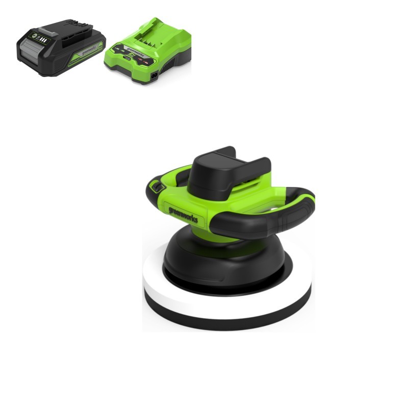 Met de Greenworks 24 volt accu polijstmachine type G24BU10 heb je een zeer krachtige accu polijstmachine. De accu polijstmachine wordt geleverd met een 2Ah accu en lader.
