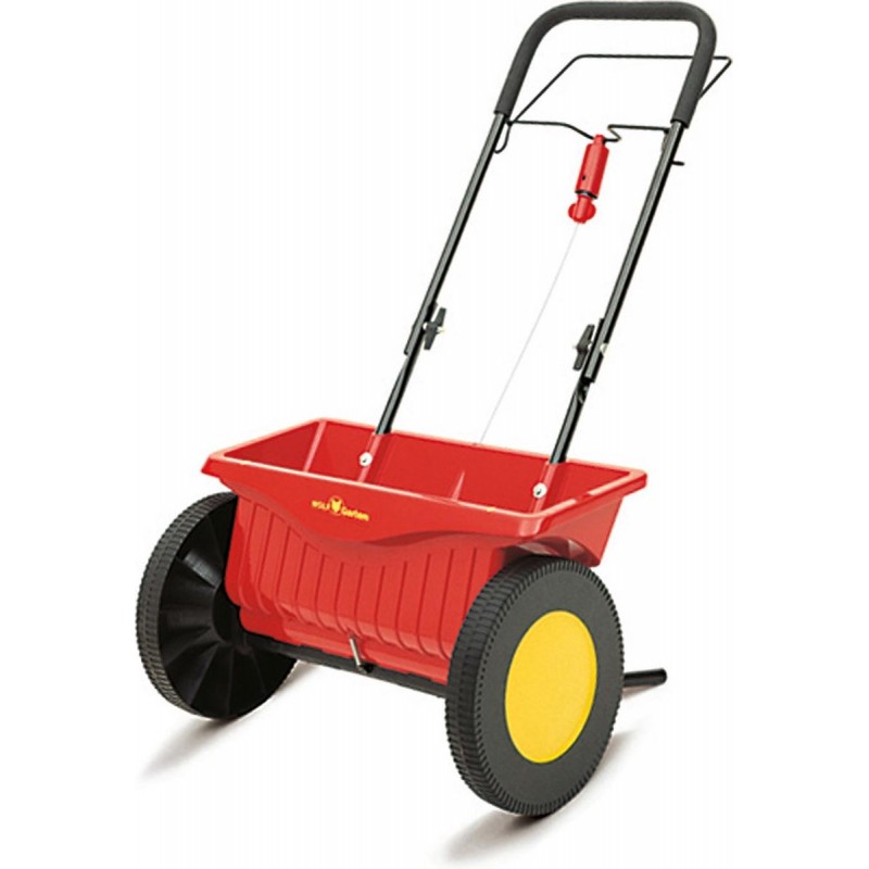 De strooiwagen WE 430 Perfect van Wolf Garten dient voor het verstrooien van zaad, meststoffen, zand, strooi-zout etc