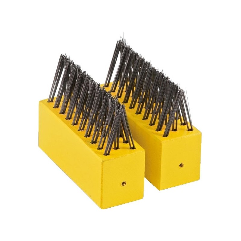 Duopack voegenborstels van WOLF-Garten geschikt ter vervanging voor versleten voegenborstel FB-M. De houten blokken met stalen borstels verwijderen van gras, mos en onkruid uit voegen en randen. De werkbreedte bedraagt 9 cm.